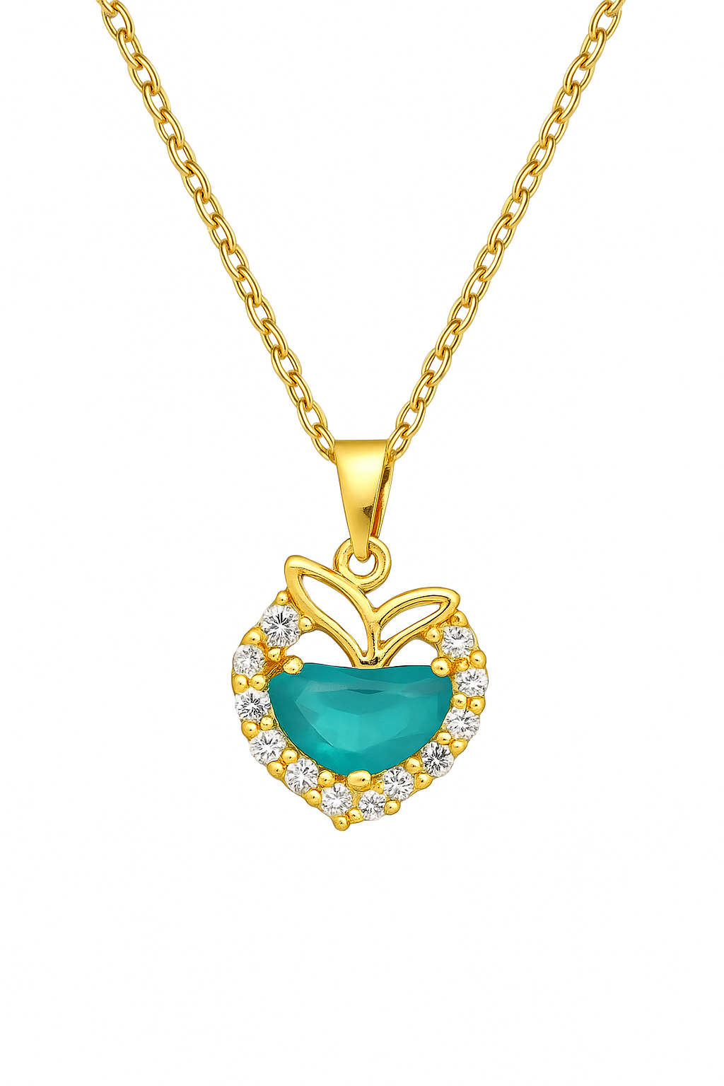 Apple Shaped Turquoise Crystal Pendant Necklace, Gold Plated Chain, CZ Stone Accents